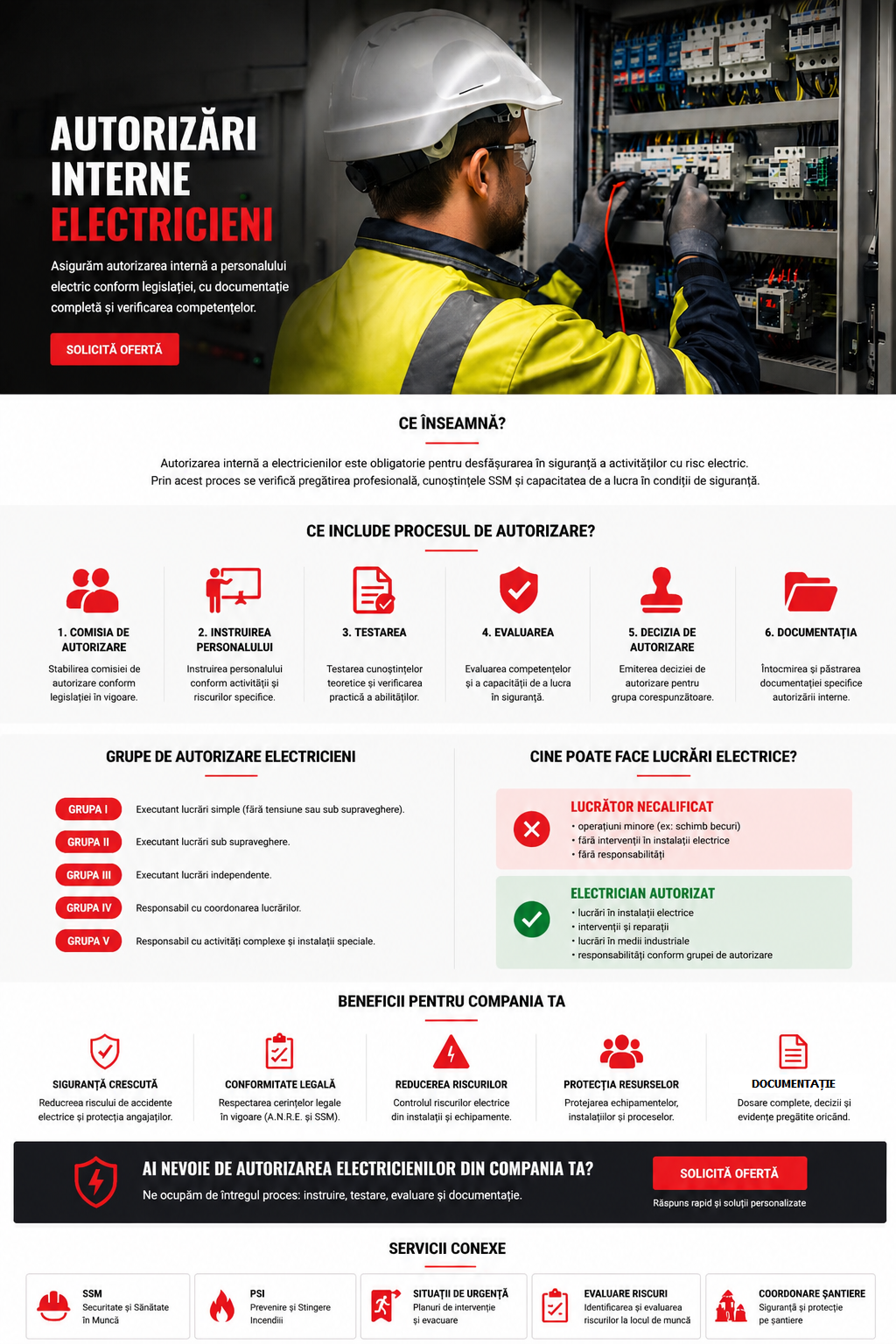 Autorizarea internă a electricienilor stabilește dacă personalul poate desfășura activități cu risc electric în condiții de siguranță.