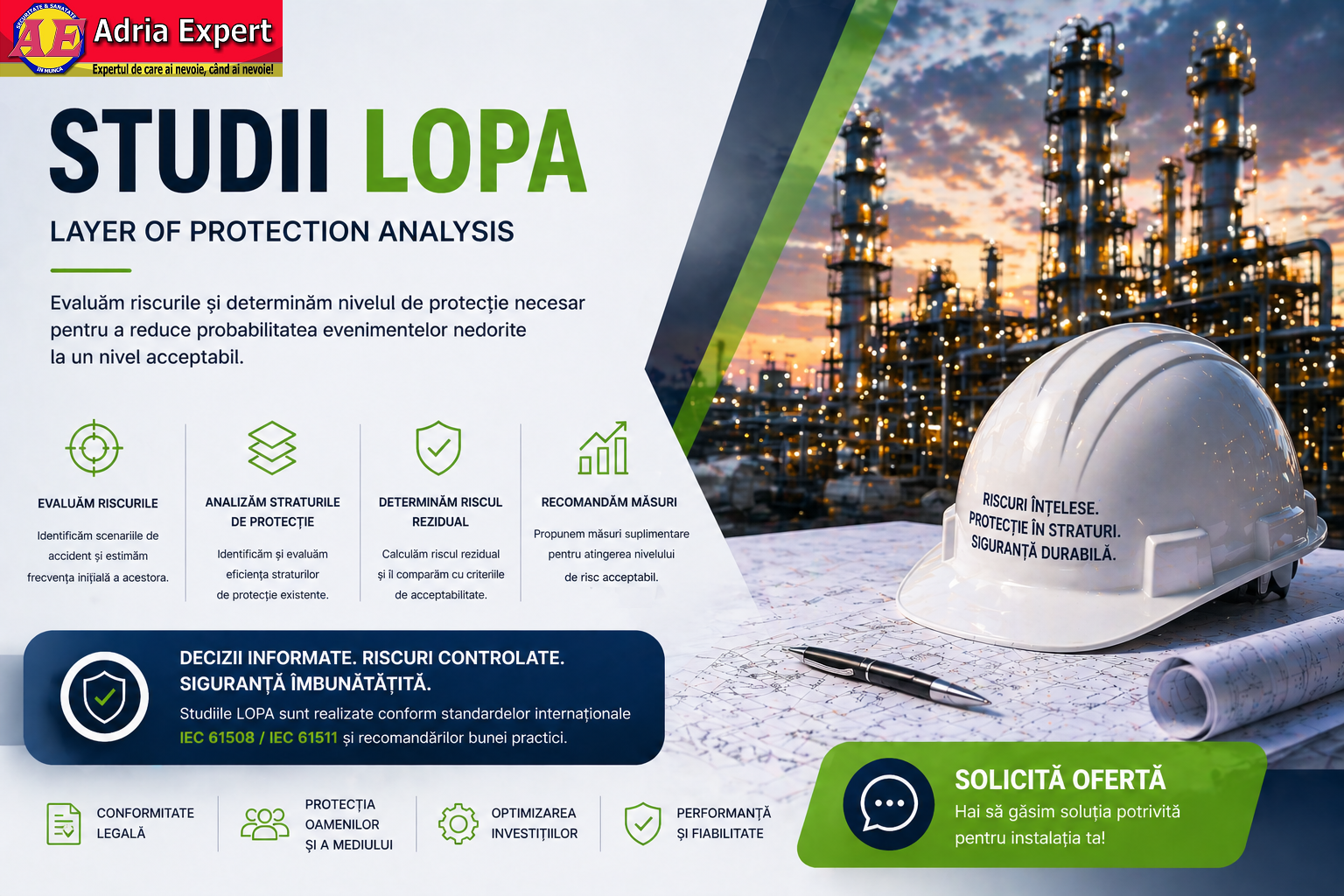 Studiile LOPA oferă o abordare clară și structurată pentru îmbunătățirea securității proceselor tehnologice.